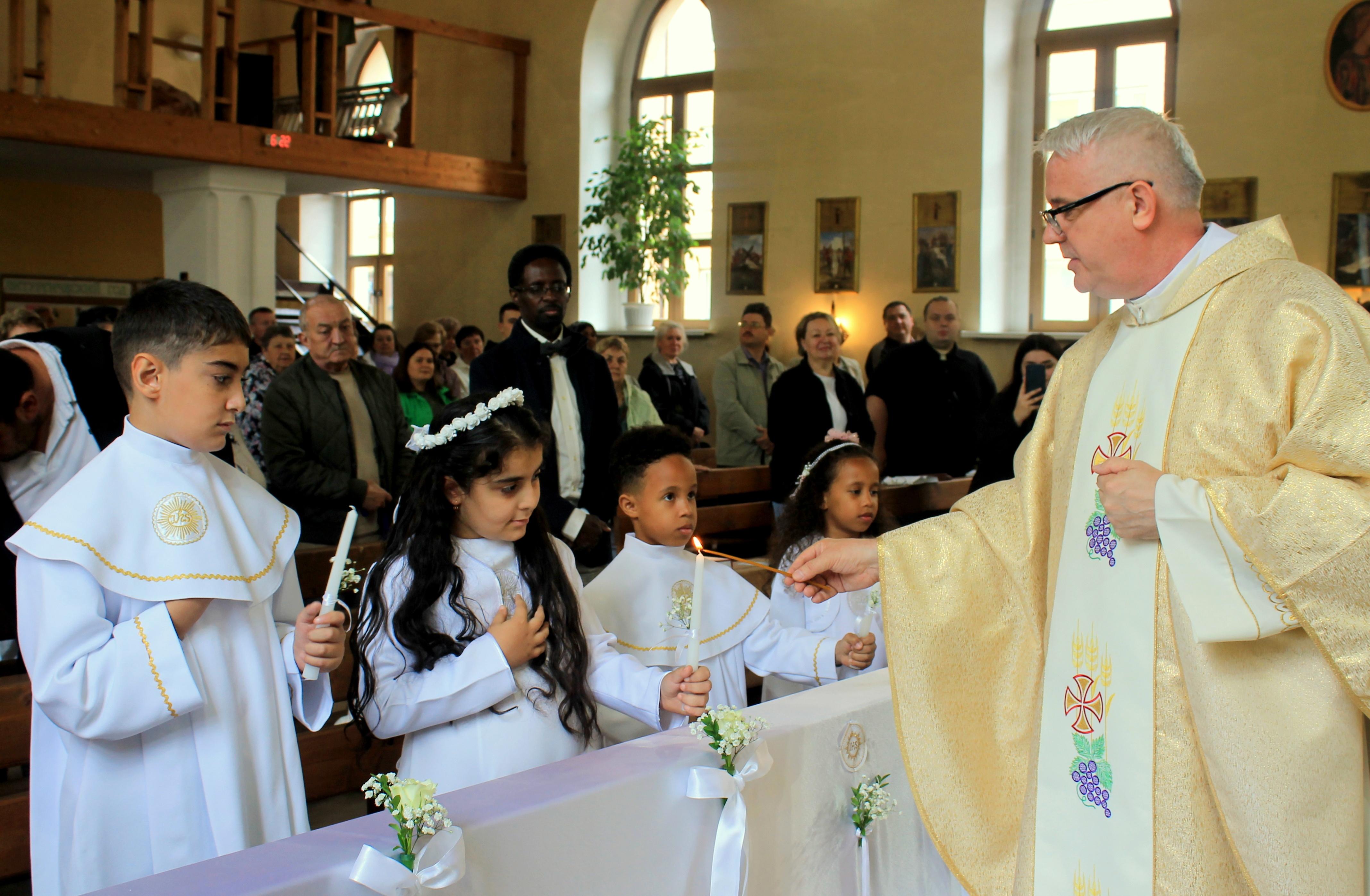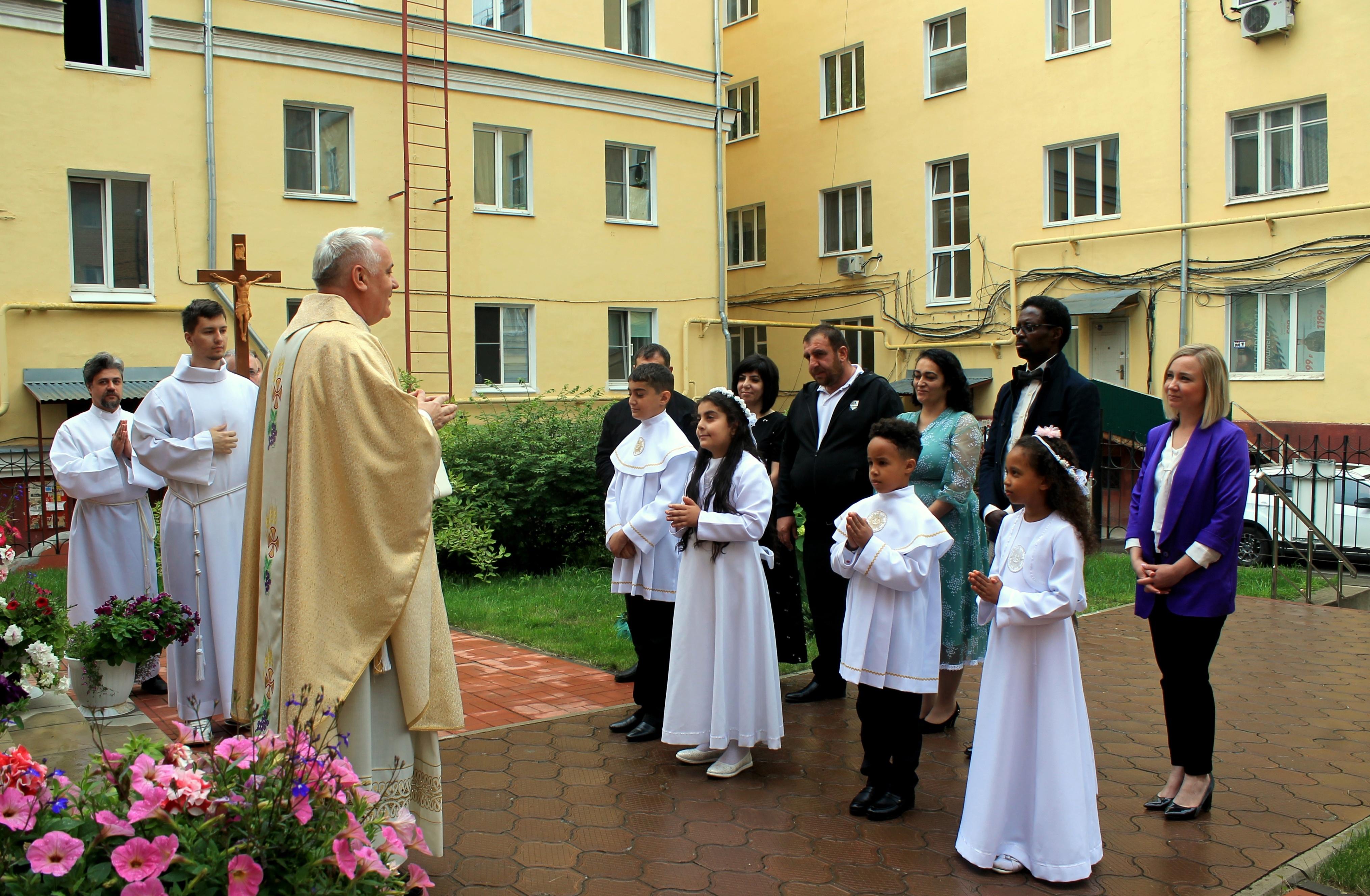 В торжество Тела и Крови Христа четверо детей впервые приняли Тело Христово в католическом храме Тулы. Вардан, Аня, Энтони и Мелисса готовились к этому важному событию два года: первый - под руководством с. Филипы, второй - с с. Стефанией.