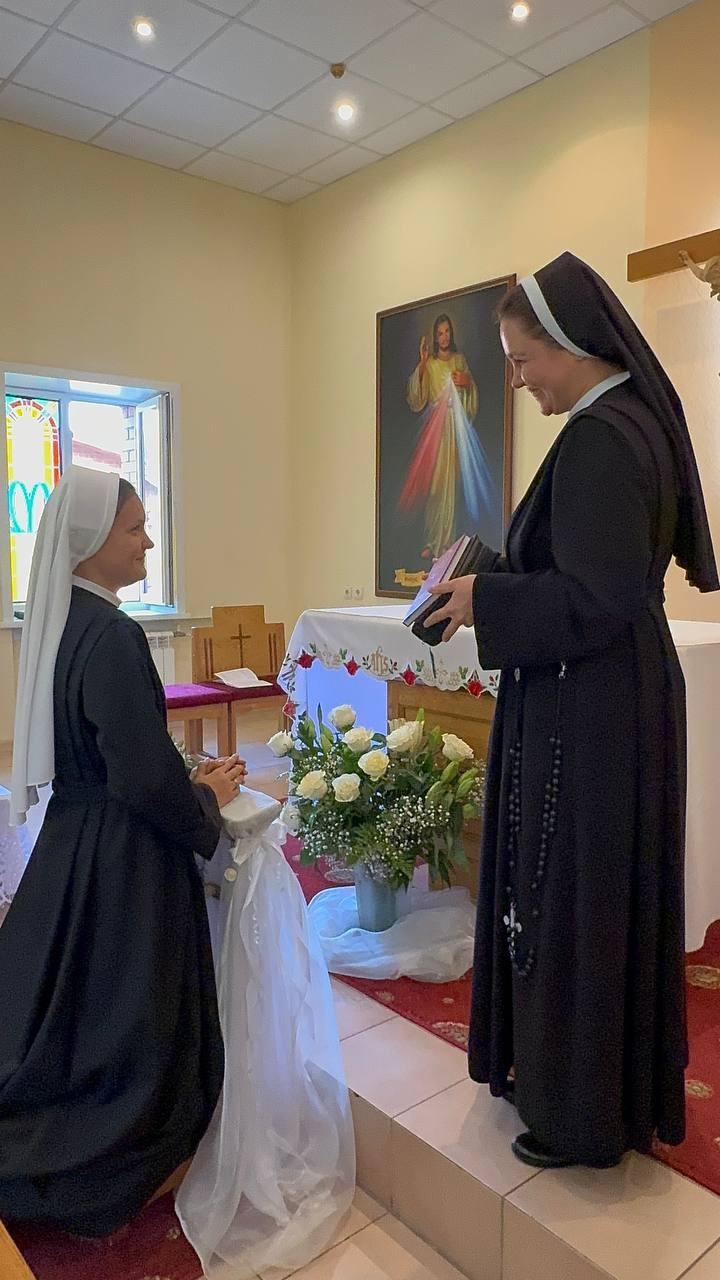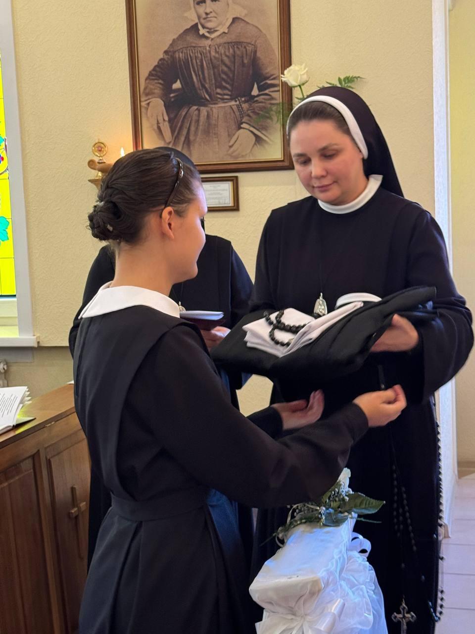 После завершения духовных упражнений для молодежи Российского Региона Конгрегации сестёр св. Елизаветы пришло время волнительных и радостных событий, к которым сёстры так долго готовились. Утром свои обеты на два года обновила с. Габриэла, а уже после обеда постулантка Амалия приняла монашеское облачение и новое имя - сестра Мария Алиция. Совсем скоро новая сестра отправится в новициат, где будет готовиться к Первым Обетам, и очень важно сопровождать её на этом пути своей молитвой, о чём мы и просим.