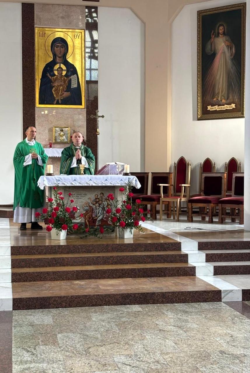 Для желающих была возможность исповеди. Перед началом Святой Мессы все вместе спели Литанию Пресвятой Богородице. Святая Месса была посвящена молитве за наши приходы, за семьи наших прихожан и за семьи всех присутствующих на Святой Мессе. Отец Станислав сказал проповедь на тему: "Господи! Покажи нам Отца, и довольно для нас" (Ин 14,18). После Святой Мессы все вместе красиво спели гимн "Аве, Аве, Аве Мария!" Ну и в завершение, по традиции, сделали общее фото на память!